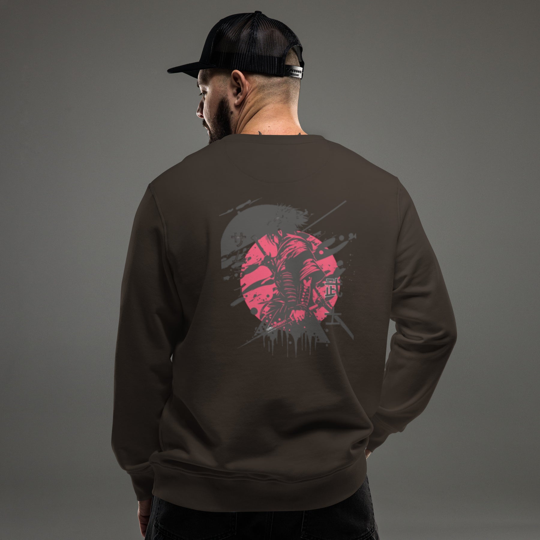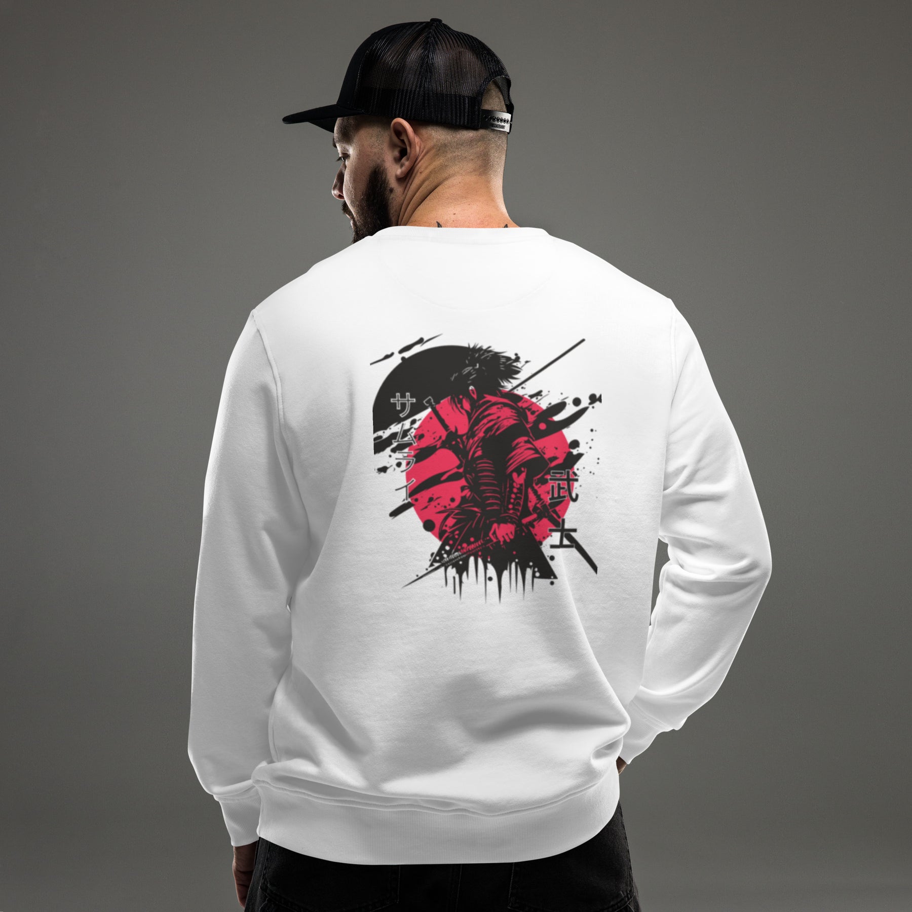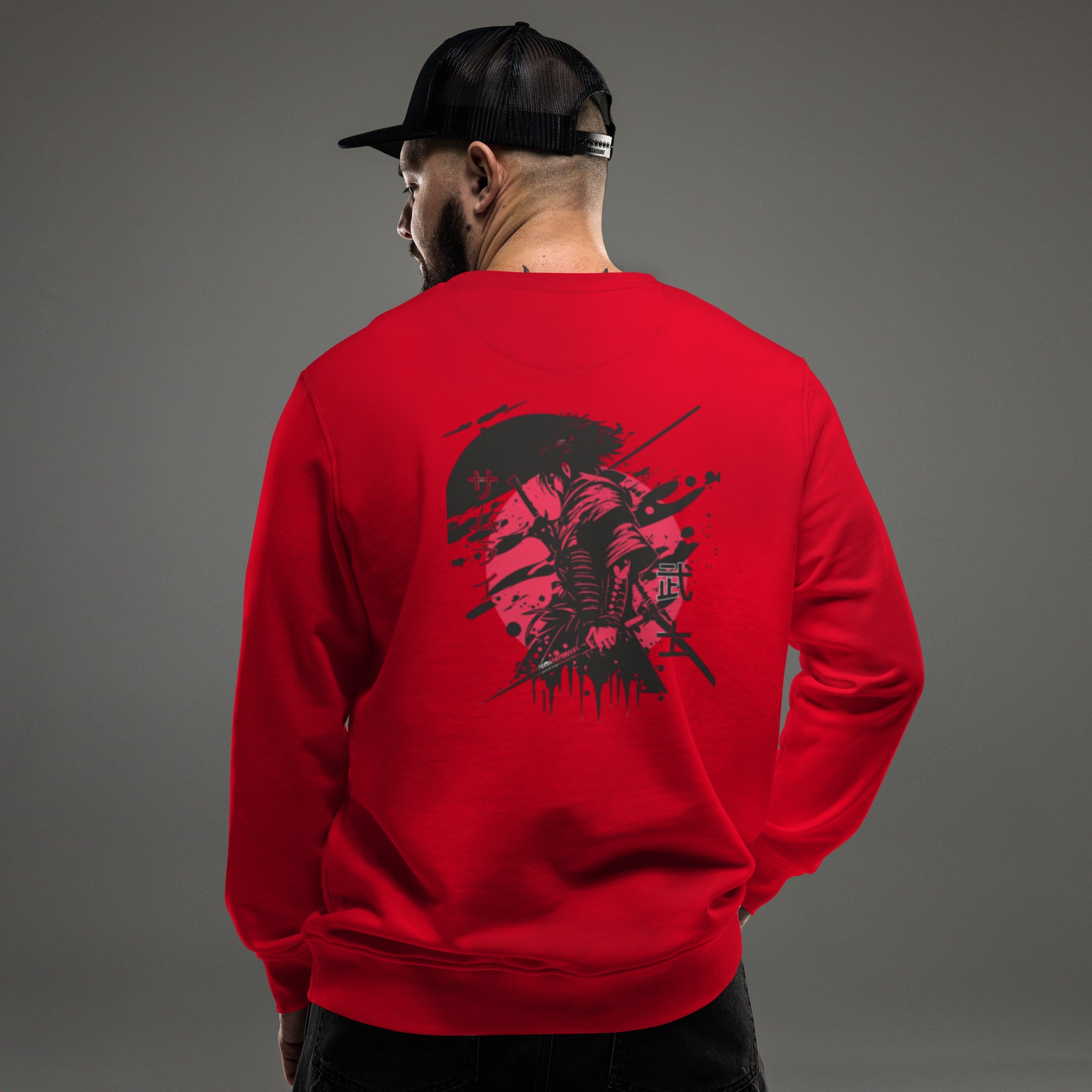 red and black samurai unisex organic sweatshirt